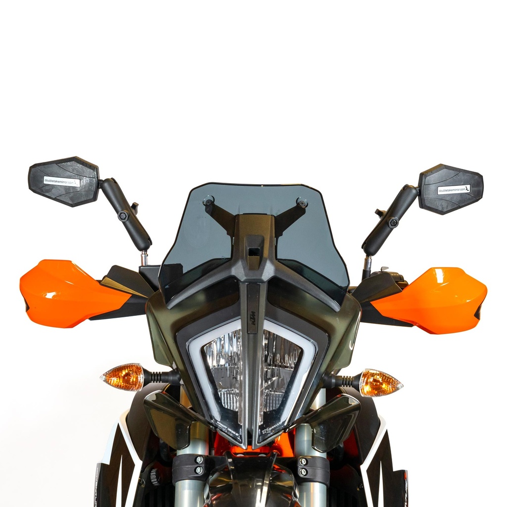 These mirrors were designed with the big adventure touring bikes in mind, but they also work well on dual sport bikes.